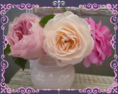 ロザリンドも開いて、たった3輪の花瓶もド迫力![]() 。 | |